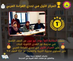 🏆الطالبة ألما جواد أبو عون من الصف التاسع